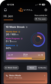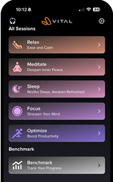Since using Vital, falling and staying asleep has improved. And when I do wake during the night, doing a a session helps me to go back to sleep, or at least calm my racing mind and thoughts.
